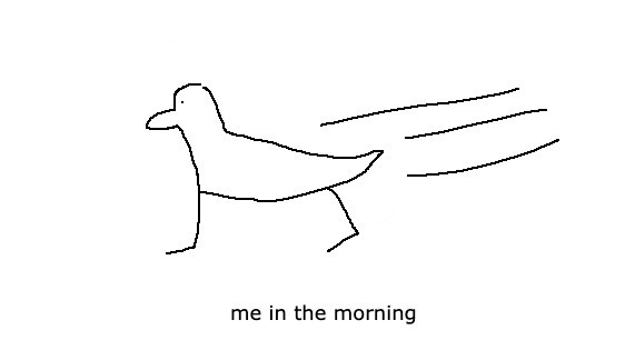 If you look up ‘Not A Morning Person’ in the dictionary, and if the dictionary included phrases rather than single words, and if dictionaries still existed as physical books you could look things up in, there would be a picture of me (if the dictionary involved pictures).