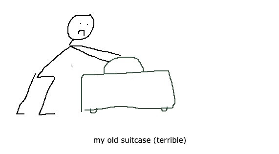 PRESENTER: Hello and welcome to this week’s episode of How Do You Pack???? Today we join comedienne and actorienne Stevie Martin who is about to go out on a three month tour and, until 2021, used an old suitcase with wheels on the wrong end of it and no handle. She would push it around like this:
