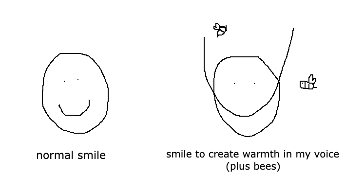 Nothing like hearing yourself played back loudly for hours on end to really get to grips with your timbre. Despite being hired constantly for my warm and friendly tone, it takes a lot of physical effort to achieve this because my voice is naturally cold and sad.