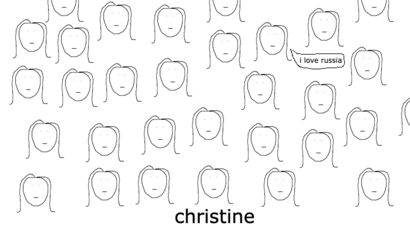 Important to note that there is always one Chris who can’t log in, or has sound issues aka the Absent Chris. Once, an ad guy zoomed in from Berlin (Kris) but was sat near a clocktower. It was exactly midday when he unmuted himself, so there was this ominous bonging noise behind him while he gave feedback, as though he was Death. And nobody found it funny! They just pretended it wasn’t happening!